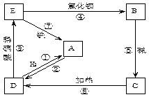 5、实验题 物质A~E中均含某种元素,都是中学化学中常见的物质,它们可发生如图所表示的反应(除A~E外的其它物质已略去):