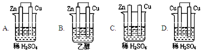 试题分析:构成原电池的基本条件是(1)活泼性不同的两个金属(或金属与非金属)作电极,(2)有电解质溶液,(3)构成闭合电路。A.符合原电池的构成条件,正确;B.乙醇是非电解质,错误;C.没有闭合电路,错误;D.必须是活泼性不同的金属作电极,错误;选A。