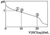 常温下,向20.00 mL 0.100 mol·L-1 CH3COONa溶液中逐滴加入0.100 0 mol·L-1盐酸,溶液的pH与所加盐酸体积的关系如下图所示(不考虑挥发)。下列说法正确的是