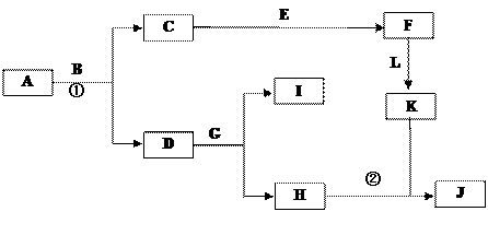 ①A为淡黄色固体,B为导致“温室效应”的主要物质; ②E为常见金属,J为红褐色沉淀;