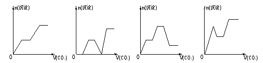 3、选择题 将足量的CO2不断通入KOH、Ba(OH)2、KAlO2的混合溶液中,生成沉淀与通入CO2的量的关系可表示为(与CO2反应由先到后的顺序是:OH-?AlO2-???CO3 2-)