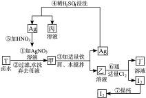 2、填空题 在已经提取氯化钠、溴、镁等化学物质的富碘卤水中,采用下列工艺流程生产单质碘。完成下列问题: