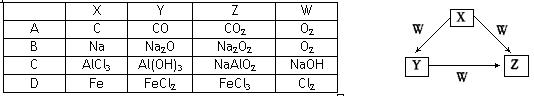 4、选择题 X、Y、Z、W是中学化学常见的四种物质,他们之间具有如图所示转化关系,则下列组合不可能的是
