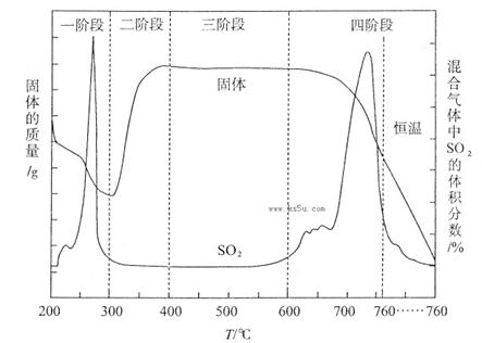②300~400oC范围内,固体质量明显增加的原因是???????????,上图所示过程中,CuSO4固体能稳定存在的阶段是???(填下列各项中序号)。