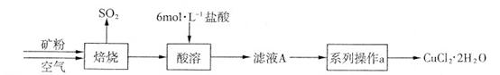 1、实验题 某矿样含有大量的CuS及少量其它不溶于酸的杂质。实验室中以该矿样为原料制备CuCl2·2H2O晶体,流程如下: