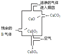 ②在工业生产中B气体的大量排放被雨水吸收后形成了????????而污染了环境。某工厂净化残余的B气体装置如图,则除去B气体的总反应方程式是????????。