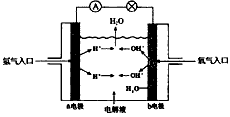 5、填空题 下图为氢氧燃料电池原理示意图,请根据提示写出正负极的电极反应式