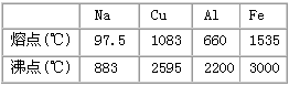 2、选择题 所谓合金,一般是指不同种金属(也包括一些非金属)在熔化状态下形成的一种熔合物,根据下列四种金属的熔沸点,其中不能形成合金的是