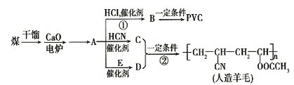 2、填空题 近年来,由于石油价格不断上涨,以煤为原料制备一些化工产品的前景又被看好。下图是以煤为原料生产聚氯乙烯(PVC)和人造羊毛的合成路线。