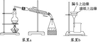 ①用“→”标出上图装置a中冷却水进出的方向,用“———”画出装置b中所加液体液面的合适位置。