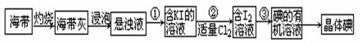 实验题 海带中含有丰富的碘元素(以I-形式存在)。实验室中提取碘的流程如下:(已知:Cl2 + 2KI =" 2KCl" + I2)
