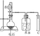 (2)所用电石质量不能太大,否则_________________________________,也不能太小,否则??? _________________________________;若容器B的容积为250 mL,则所用电石的质量应在___________ g左右(选填:0.03,0.60,1.00,1.50,2.00)。