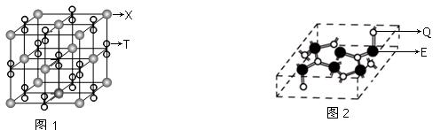 (3)化合物甲由T、X两元素组成,其晶胞如图1,甲的化学式为?????。