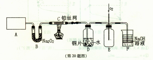 按上图连接好各仪器,现将C处的铂丝网加热至红热,再将A处产生的气体通过B装置片刻后撤去C处酒精灯,部分实验的现象如下:铂丝继续保持红热状态,D中的铜片慢慢溶解,回答下列问题: