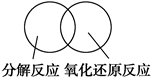 (2)可用图示的方法表示不同反应类型之间的关系。如分解反应和氧化还原反应可表示为下图。请在下面的方框中画出离子反应、置换反应和氧化还原反应三者之间的关系。