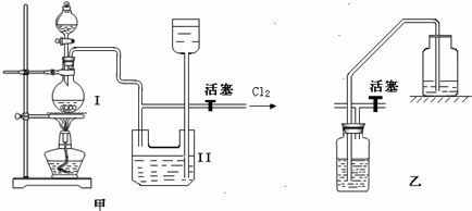(1)甲装置Ⅱ是利用______原理设计的.当关闭活塞时,产生的氯气将Ⅱ中下方容器内的液体______,这样既可达到______目的,又可防止多余的Cl2逸散到空气中,从而使装置达到随时取用Cl2的目的.