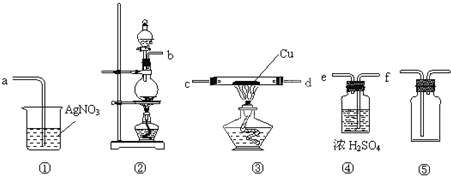 (5)乙同学认为甲同学实验设计仍然存在缺陷,不能证明最终通入AgNO3溶液中的气体只有一种.为此,乙同学提出气体通入装置①之前,要加装一个检验装置⑤,以证明最终通入AgNO3溶液中的气体只有一种.你认为装置⑤应放入______.如果最终通入AgNO3溶液中的气体只有一种,装置⑤应观察到的现象______.