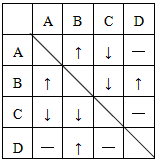 填空题  现有稀盐酸、稀硫酸、氢氧化钡、碳 酸钠四瓶失去标签的溶液,分别编号为A、B、C、D每次取少量溶液两两混合,所观察到的现象如表,“一”表示无明显现象;“↓”表示有沉淀生成;“↑”表示有气体生成。