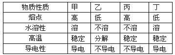 某实验小组对甲、乙、丙、丁四种固体样品的性质进行测试,结果如【物质的检验】