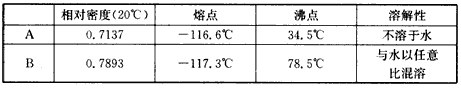 填空题  A和B两种有机物可以互溶,有关性质如下