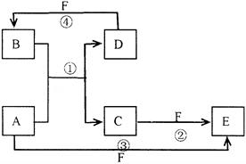 5、填空题 (12分)A、B、C、D、E、F六种物质的转化关系如图所示(反应条件和部分产物未标出)