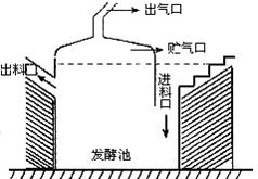 5、实验题 下图是我国农村采用的一种沼气池的剖面示意图:使用时由进料口放进农作物的废弃物如秸杆、杂草、树叶等以及人、畜、家禽的排泄物,然后加满水到一定位置以留下贮气空间,经过一段时间的发酵之后,便有沼气产生。