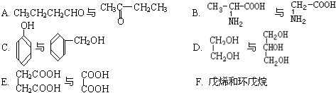 4、填空题 下列各化合物中,属于同系物的是(填入编号)______,属于同分异构体的是______.