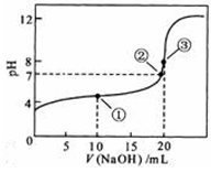 本题解析:点①所示溶液中的溶质为0.001mol的CH3COOH和0.001mol的CH3COONa;根据电荷守恒得