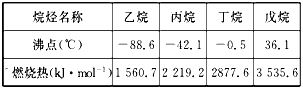 3、选择题 含有2~5个碳原子的直链烷烃沸点和燃烧热的数据见下表