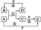 5、填空题 (10分)A、B、C、D、E、F六种物质的转化关系如图所示(反应条件和部分产物未标出)。