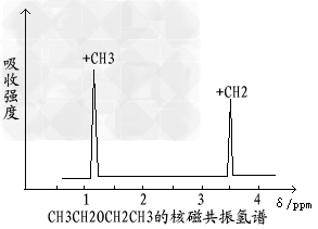 例如二乙醚的结构简式为:CH3—CH2—O—CH2—CH3 其核磁共振谱中给出的峰值(信号)有两个,如图所示:??