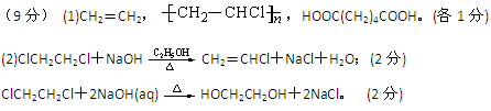 本题解析:根据A的分子式可知,A是乙烯。乙烯和B反应生成C,C又生成乙二醇F,所以B是氯气,和乙烯发生加成反应生成1、2-二氯乙烷。1、2-二氯乙烷发生水解反应生成F。发生消去反应生成D,则D的结构简式是CH2=CHCl。D中含有碳碳双键,所以能发生加聚反应生成高分子化合物E。根据F和G的生成物可知,该反应应该是缩聚反应,所以G是1、4-己二酸。