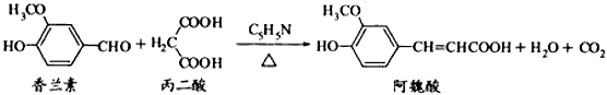 2、选择题 阿魏酸在食品、医药等方面有着广泛用途。一种合成阿魏酸的反应可表示为