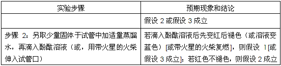 (2)提出假设。 假设1:全部是Na2O2 假设2:全部是Na2CO3 假设3:__________________