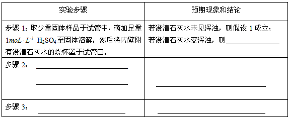 (3)设计方案,进行实验。请写出实验步骤以及预期现象和结论(可不填满)。限选实验试剂和仪器:蒸馏水、1moLL-1H2SO4、澄清石灰水、淀粉-KI溶液、酚酞溶液、火柴、试管、小烧杯。