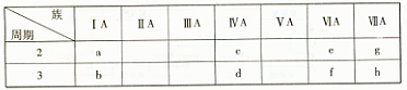 本题解析:由表知abcdefgh分别为Li、C、O、F、Na、Si、S、Cl,根据周期律同周期原子