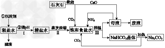 (3)向饱和食盐水中首先通入的气体是______,过程Ⅲ中生成NaHCO3晶体的反应的化学方程式是__________________。