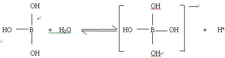 ,但硼酸溶于水后,1个硼酸分子与水作用,只能产生1个H+,请写出硼酸溶于水后溶液显酸性的离子方程式:?(共4分)