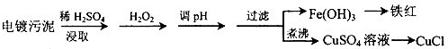 参考答案:(1)电镀污泥中含有铜、铁等金属化合物,酸浸后主要是溶解铜、铁等金属化合物,双氧水有强氧化性,能氧化还原性的物质,Fe2+具有还原性,酸浸后加入H2O2,Fe2+能被双氧水氧化为高价离子,便于调整pH值与