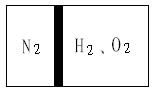 2、计算题 (共8分)常温下,在一刚性容器内部有一个不漏气且可以滑动的活塞,将容器分割成左右两室。左室充入N2,右室充入H2和O2,活塞正好使N2占容器体积的1/4(如图)。然后点燃H2和O2的混合气体,反应完毕后恢复至原来的温度,活塞正好停留在容器的中间。经检验,此时右室中气体可使带火星的木条复燃。