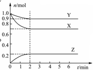 2Z;(2)反应开始至2min,气体Z的平均反应速率为v=△c/△t=0.05mol/(L.min);(3)①反应达平衡时,气体的总物质的量为:0.9mol+0.7mol+0.2mol=1.8mol,起始时气体的总物质的量为:1.0mol+1.0mol=2.0mol,在相同温度下,气体的物质的量之比等于压强之比,反应达平衡时,此时容器内的压强与起始压强之比为1.8mol:2.0mol=0.9;②若X、Y、Z均为气体,将容器的体积缩小为原来的 0.5倍,平衡正向移动,容器内温度将降低(容器不与外界进行热交换),则该反应的正反应为吸热反应。