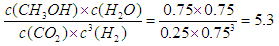 (4)根据图像可知起始时CO2的浓度是1.00mol/L的,说明容器容积是1L。10min时反应达到平衡状态,平衡时CO2的浓度是0.25mol/L,因此消耗CO2的浓度是0.75mol./L。根据方程式可知消耗氢气的浓度是0.75mol./L×3=2.25mol/L,所以氢气的反应速率为 。平衡时