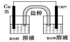 本题解析:(1)Cu是负极,电解液是氯化铁溶液,碳棒或Pt作为正极,两极用导线连接,电解液用盐桥连接,故图为: