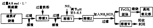1、实验题 高纯氧化铁(α-Fe2O3)是现代电子工业的重要材料。实验室用硫铁矿烧渣(主要成分是Fe2O3、FeO、SiO2等)为原料制备高纯氧化铁的步骤如下
