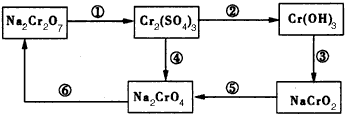 5、填空题  铬是水体的主要污染物之一,可以导致水生生物死亡。化学实验中,若使某步中的有害产物作为另一步的反应物,形成一个循环,就可不再向环境排放该有害物质。例如处理铬的实验循环示意图如下
