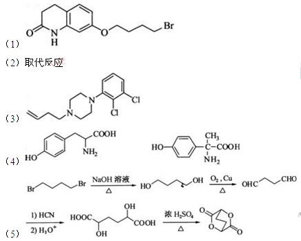 3、填空题  (14分)阿立哌唑(A)是一种新的抗精神分裂症药物,可由化合物B、C、D在有机溶剂中通过以下两条路线合成得到。