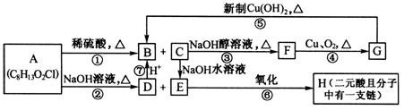 3、填空题  分子式为C8H13O2Cl的有机物A发生如图所示的变化:
