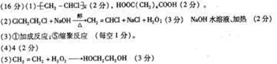 3、填空题  聚酯纤维是化学纤维中的第一大品种,聚已二酸乙二酯就是一种重要的聚酯纤维,可用于制造性能各异的聚氨酯泡沫塑料,弹性体、涂粘和粘接剂等。目前经典的合成路线是使用来源丰富的有机原料A和常见单质D,经过一系列反应,同时合成聚已二酸乙二酯与另一种生产生活中常用高聚物E,合成路线如下图所示。根据图示回答下列问题: