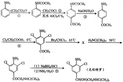 1、填空题 【化学—有机化学基础】瘦肉精又名克伦特罗(4-氨基-α-叔丁胺甲基-3,5-二氯苯甲醇),是一种β2肾上腺素受体激动剂,临床上用于治疗哮喘。可由下图所示路线合成: