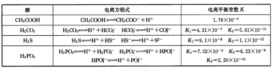 (3)若把CH3COOH、H2CO3、HCO3-、H2S、HS-、H3PO4、H2PO4-、HPO42-都看作是酸,其中酸性最强的是 ____,最弱的是____。